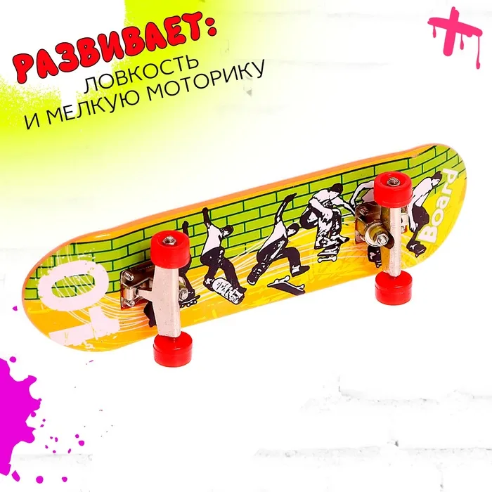 - В комплект входят фингерборд и фингербайк — уменьшенные версии скейтборда и велосипеда.