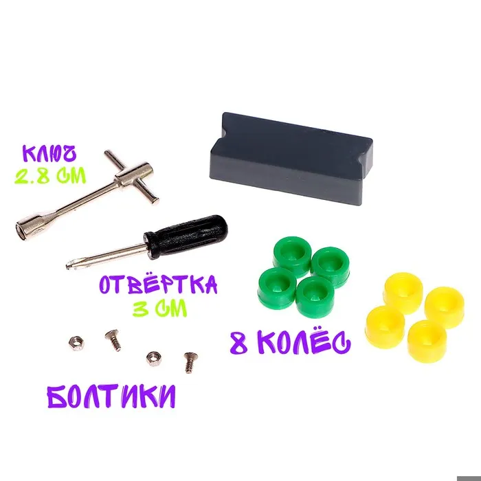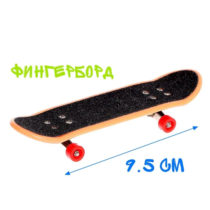 - В комплект входит фингерборд — уменьшенная версия скейтборда.