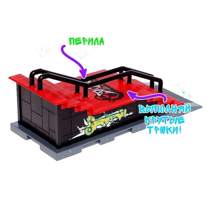 - Также в комплекте есть лестница с перилами, открывающая новый уровень возможностей для трюков.