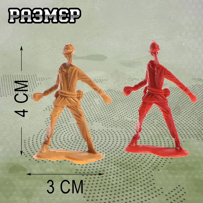 - Размер одного солдатика: 3 × 1 × 4 см. В наборе 20 шт.