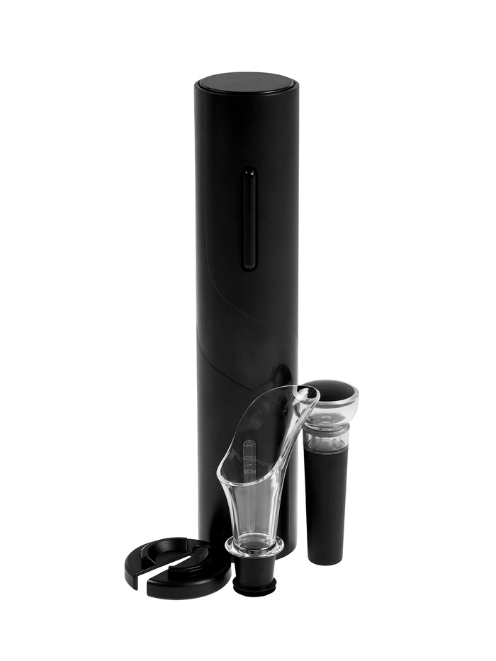 Электрический набор сомелье превращает процесс открытия вина в простой, быстрый и стильный ритуал. Один нажим — и пробка выходит из бутылки без усилий, фольга срезается, а вино можно сразу аэровать и наливать. Всё, что нужно для комфортного вечера, собрано в одном компактном комплекте.