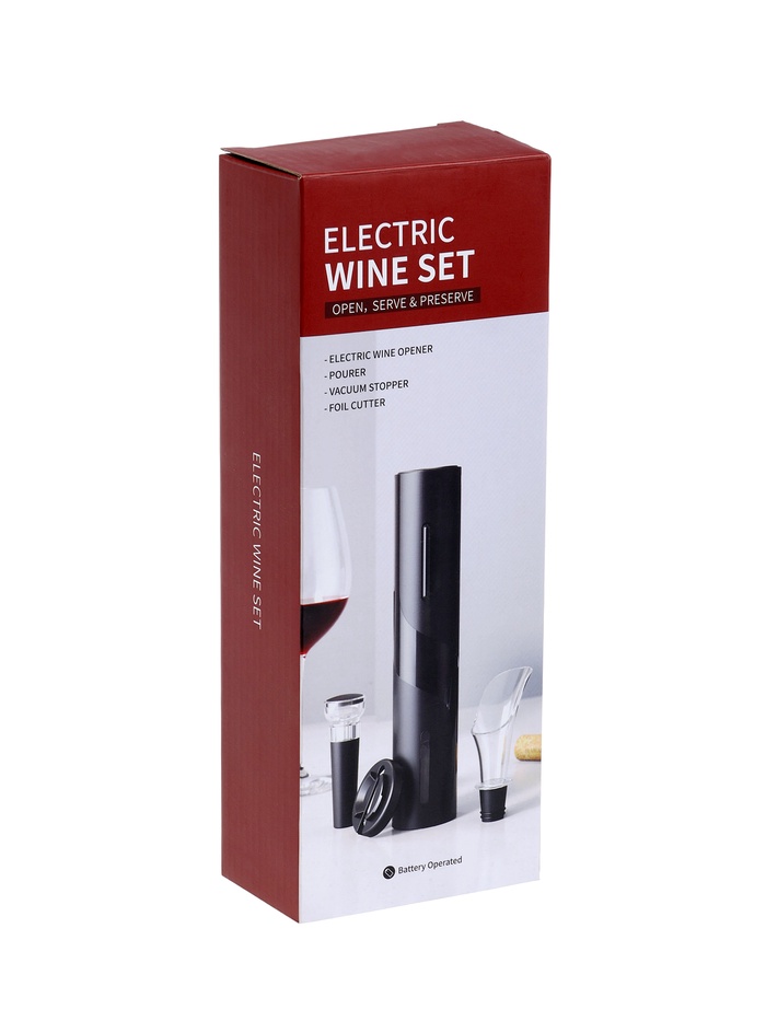 Набор сомелье электрический LSH-04, пробка, аэратор, штопор, от батареек, чёрный — Характеристики