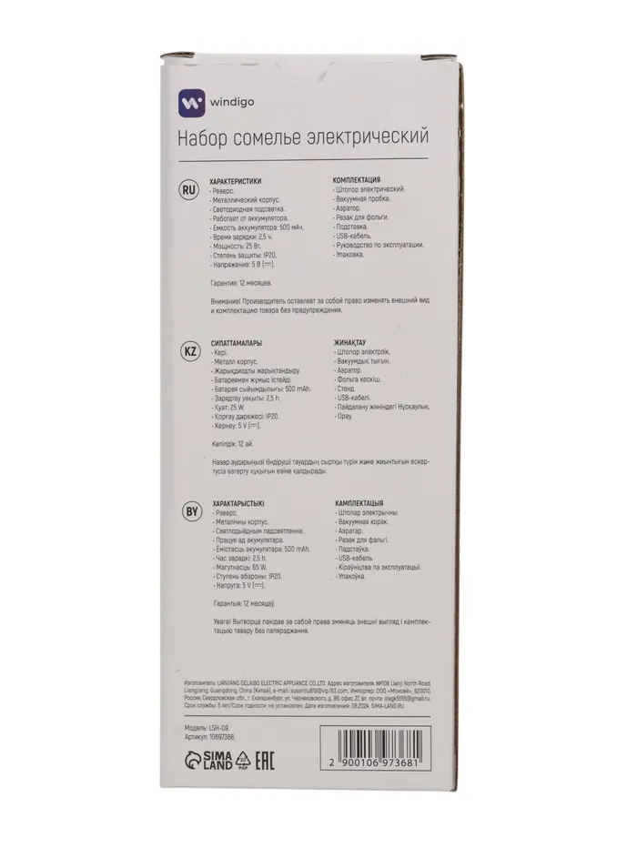 Набор сомелье Windigo LSH-09, пробка, аэратор, штопор, подставка, металл, от АКБ — Характеристики