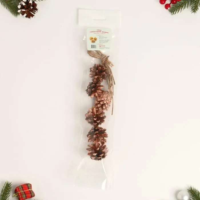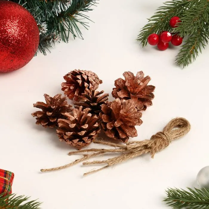Набор сосновых шишек золотых с верёвками, 6 шт — Характеристики