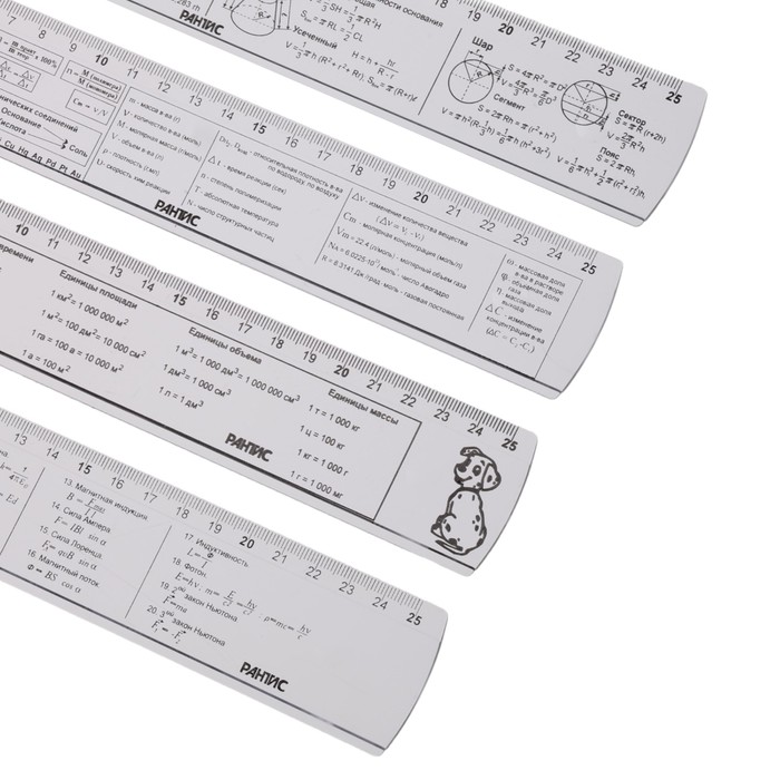 Набор справочных линеек 4 штуки, Calligrata 25 см, прозрачные, таблица умножения, химия, геометрия, физика — Характеристики