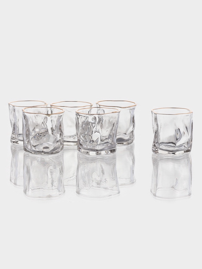 Набор из 6 стеклянных стаканов с золотой отводкой — это осознанный выбор для тех, кто любит чёткость форм и лёгкий акцент роскоши.