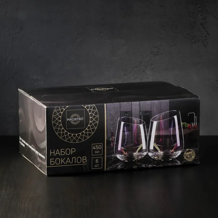 Набор стаканов Magistro «Иллюзия» — это воплощение изысканности и стиля. Эти уникальные стаканы объёмом 450 мл станут ярким акцентом на вашем столе и подчеркнут изысканный вкус. Каждый стакан имеет размеры 9,5×11,5 см и выполнен из высококачественного стекла. Благодаря элегантному дизайну и гладкой поверхности, стаканы Magistro «Иллюзия» легко очищаются и прослужат вам долгое время. Они идеально подходят для подачи разнообразных напитков, будь то сок, лимонад, коктейль или вино.