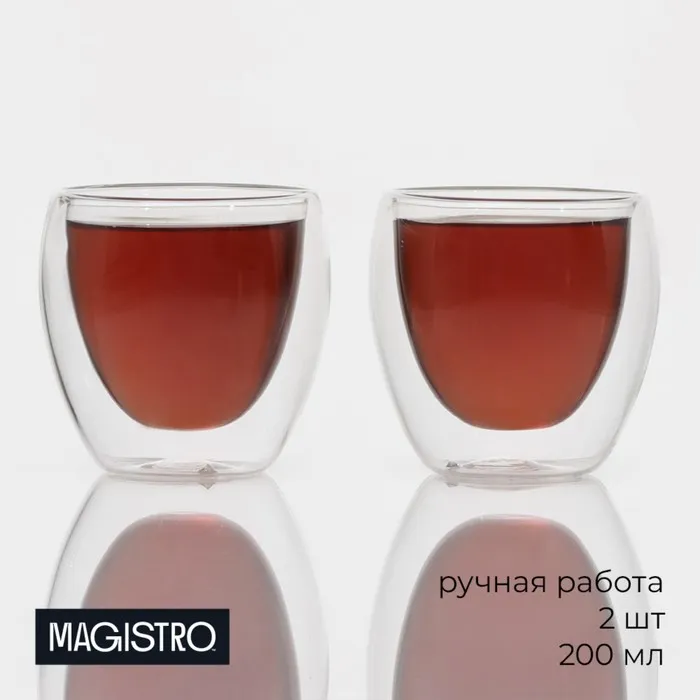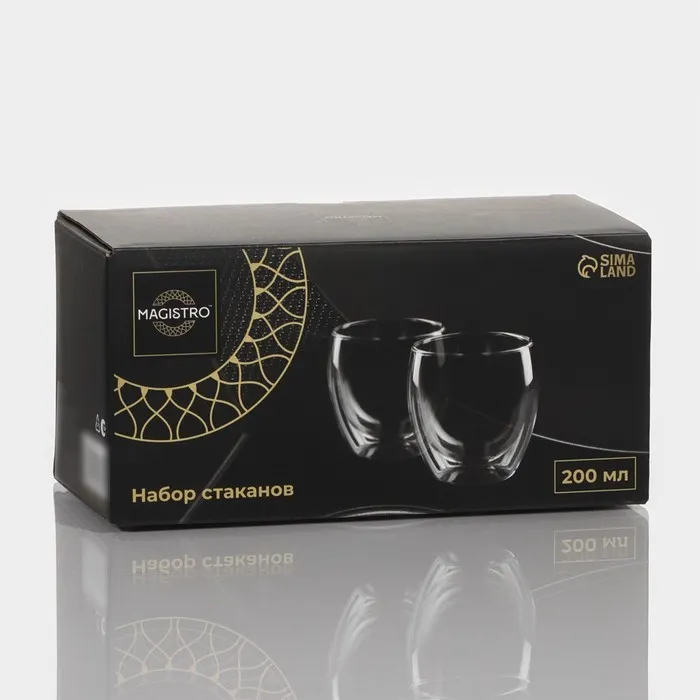 Набор стаканов с двойными стенками Magistro, 200 мл, 8.3×8.2 см, 2 шт., стекло, прозрачный — Характеристики