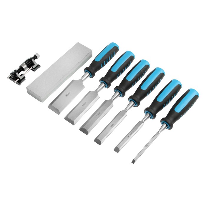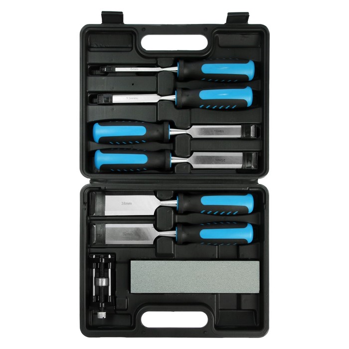 Набор стамесок ТУНДРА, 2К рукоятки, 45 сталь, 6 - 38 мм, с набором для заточки, кейс, 6 шт. — Характеристики