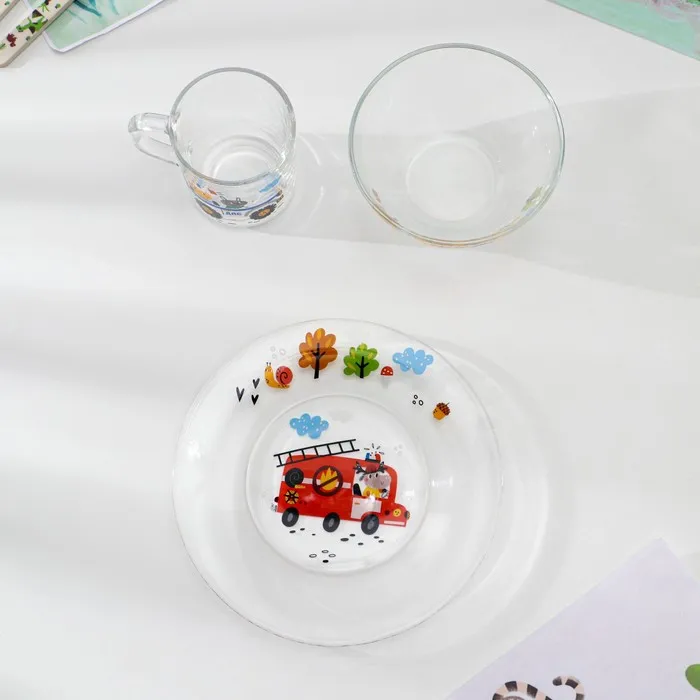 Набор стеклянной детской посуды 3 предмета - прекрасное решение для юных гурманов! Включая все необходимые столовые принадлежности, этот комплект является идеальным выбором для детей. Набор сочетает в себе все необходимые аксессуары для прикорма детей и подарит вашим крошкам радость и комфорт. Наш подарочный набор специально разработан для детей, которым исполнилось 3 года. Удобный размер создан специально для детских ручек, что сделает процесс приятным и удобным и быстро приучат ваше чадо использовать приборы. Набор можно мыть в посудомоечной машине и использовать в микроволновке, что облегчает уход за ним. При этом декоративный принт товаров для дома сохраняет яркость и не стирается. Яркая цветовая гамма придаст посуде элегантный вид. Это не только практичный инвентарь для еды, но и замечательный подарок на день рождения или именины. Неважно, девочка ли это или мальчик, каждый будет в восторге от своего сказочного сервиза. Он подходит для каши, супа, пюре, соков, воды, чая, а также для другой пищи за столом. Ребенок с радостью и с удовольствием начнет самостоятельно кушать.