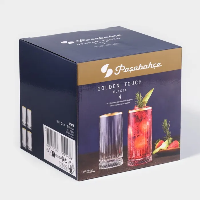 Набор стеклянных стаканов Elysia, 445 мл, 4 шт, с золотой каймой — Характеристики