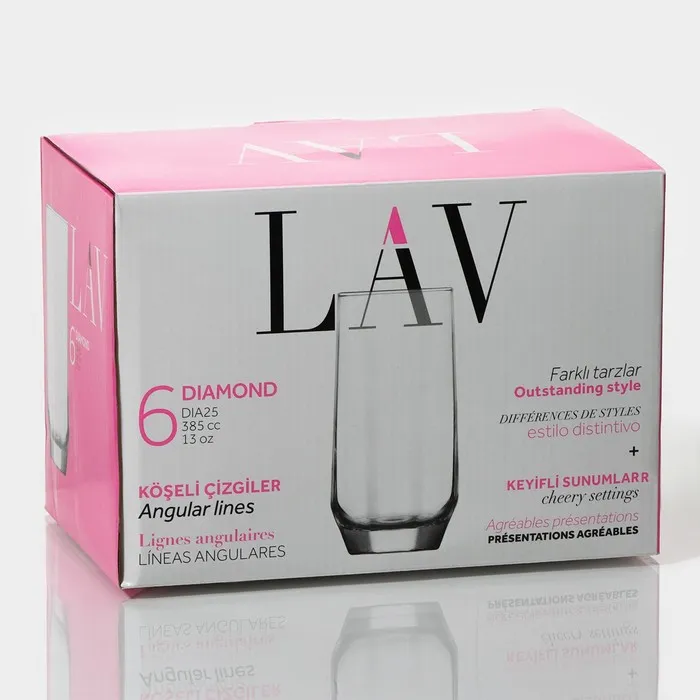 Набор стеклянных стаканов Lav «Алмаз», 385 мл, 6,2×14,2 см, 6 шт — Характеристики