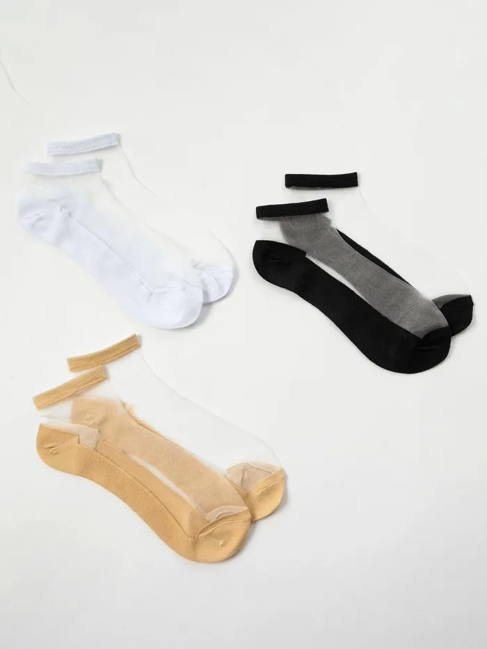 Набор стеклянных женских носков 3 пары "Француженка", р-р 35-37 (22-25 см), цвет бел/беж/черн — Характеристики