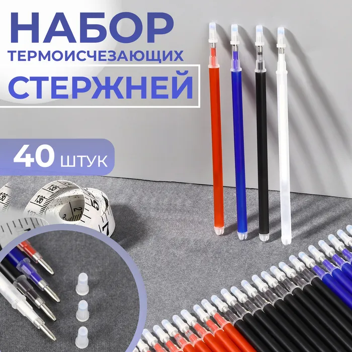 Набор стержней, термоисчезающих, 40 шт., белый, красный, чёрный, синий