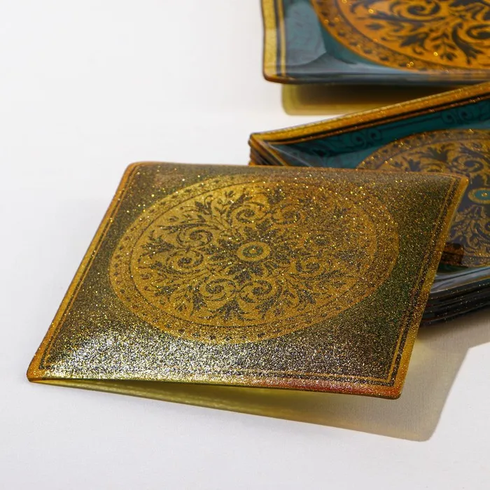 Набор столовый «Арабеска» состоит из 7 предметов в элегантном дизайне золотисто-зеленых оттенков с черным узором. Каждый предмет изготовлен из высококачественного стекла, которое придает посуде прочность и стойкость к царапинам.