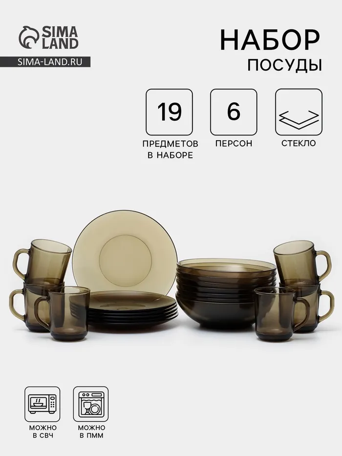 Набор столовый Basilico, 19 предметов, стекло, коричневый — Характеристики