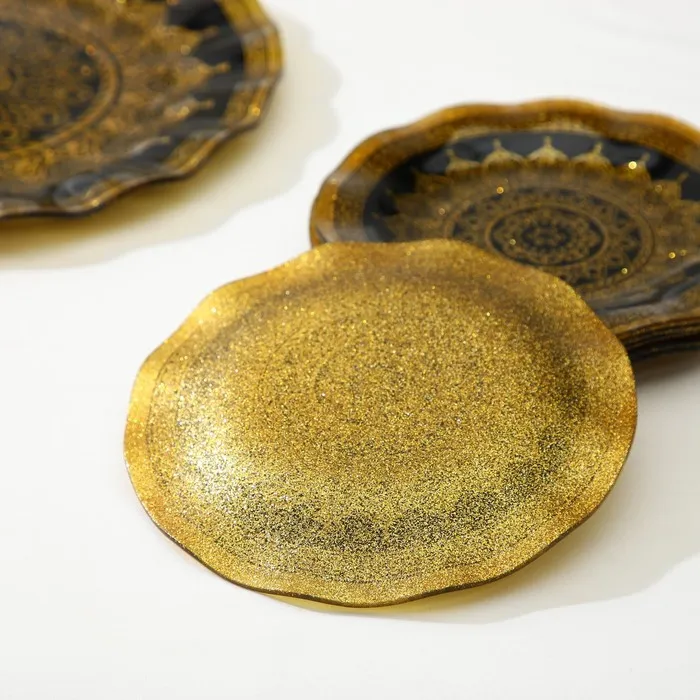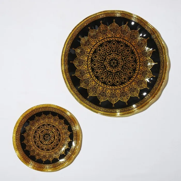 Набор столовый «Мехенди», 7 предметов: d=30 см - 1 шт, d=18 см - 6 шт, цвет золотой, черный — Характеристики