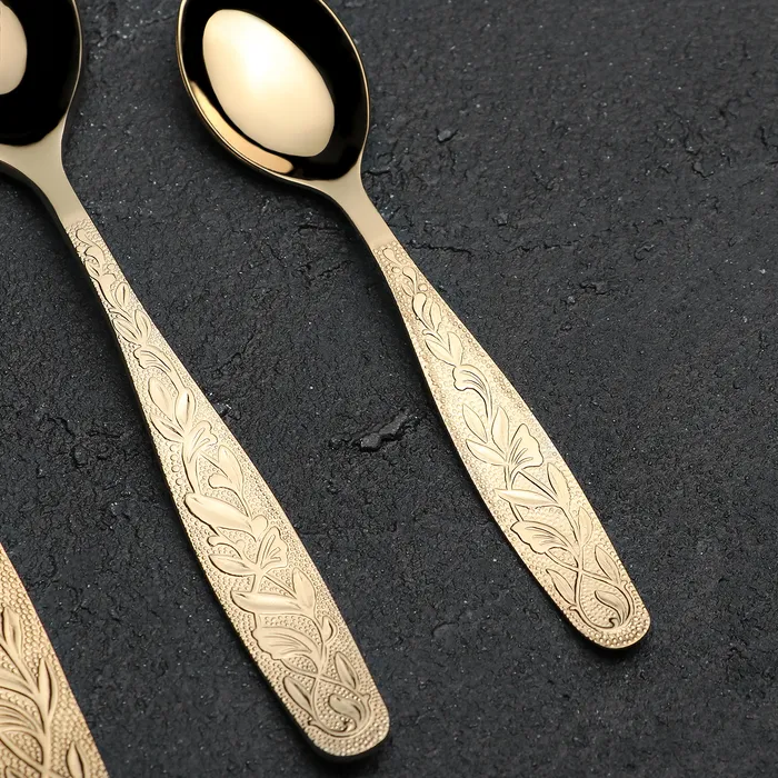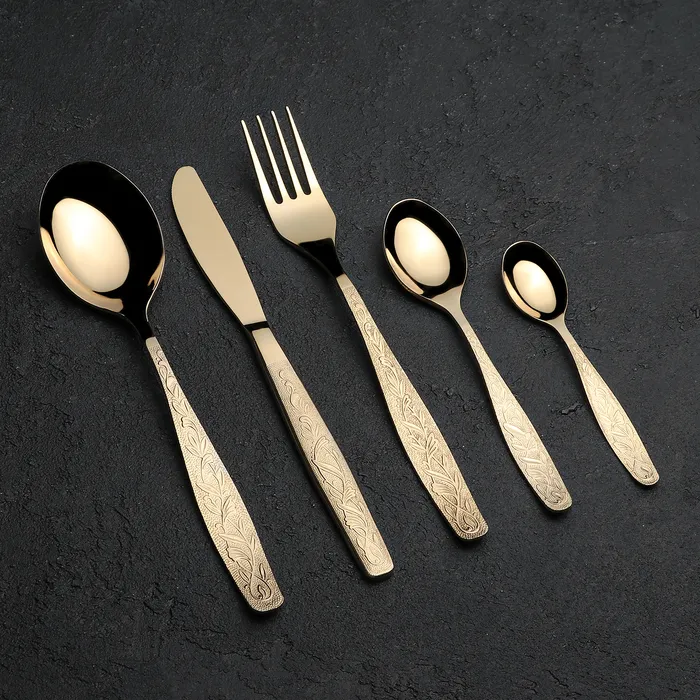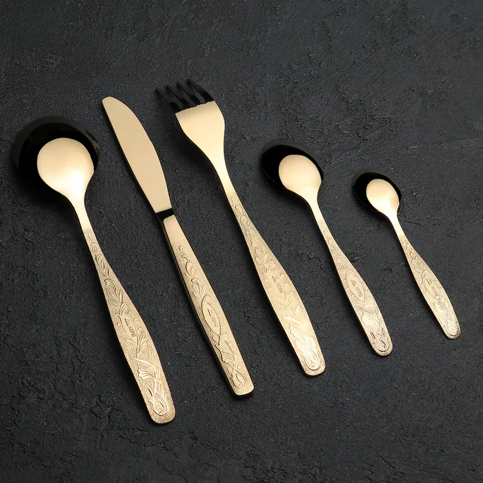 Набор столовый «Уралочка», 30 предметов, с полным декоративным покрытием, декоративная коробка, цвет золотой — Характеристики