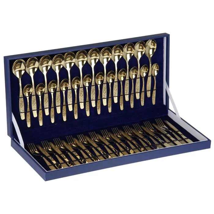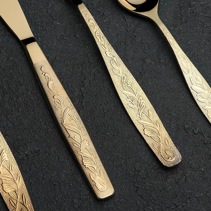 Набор столовый «Уралочка», 48 предметов, толщина 2 мм, с полным декоративным покрытием, декоративная коробка, цвет золотой — Характеристики