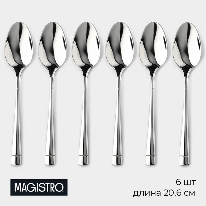 Набор столовых ложек Доляна «Эмили», длина 20.5 см, 6 шт., нержавеющая сталь, серебристый — Характеристики