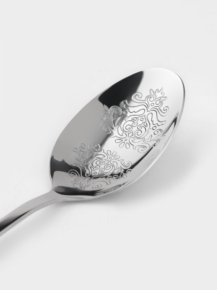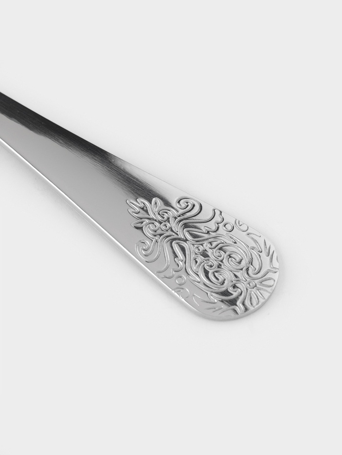 - Изящный декор: узор на ручке придает изделиям индивидуальности. Ложки выглядят стильно, но без излишней вычурности.