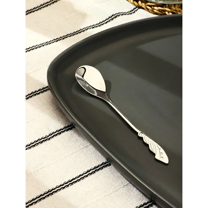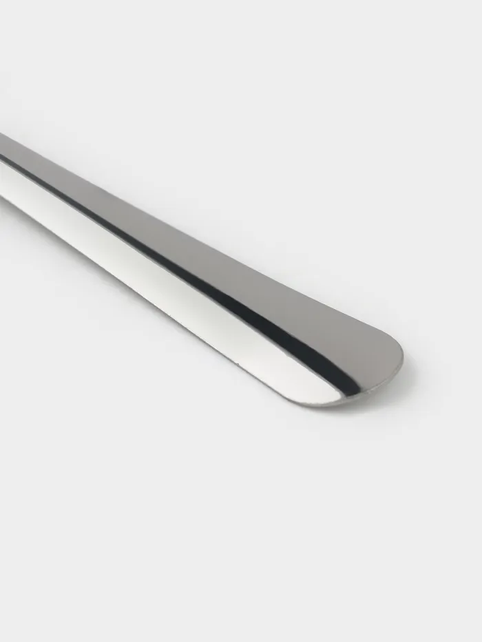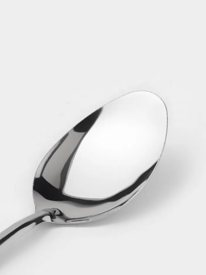 - Нержавеющая сталь: материал устойчив к воздействию влаги и температуры, не темнеет и не теряет блеска при регулярном использовании. Ложки не впитывают запахи и не вступают в реакцию с продуктами.