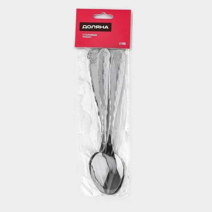 Набор столовых ложек из нержавеющей стали Доляна «Соты», длина 20 см, толщина 2 мм, 6 шт., серебристый — Характеристики