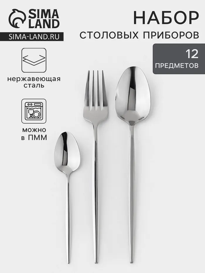 Набор столовых приборов «Блинк», 18 предметов, нержавеющая сталь, серебристый — Характеристики
