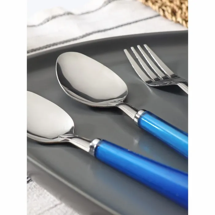 Набор столовых приборов Доляна имеет современный минималистичный дизайн с четкими контурами и отсутствием декоративных элементов, поэтому его можно использовать для сервировки практически в любом стиле. Приборы изготовлены из высококачественной нержавеющей стали, имеют удобные пластиковые ручки, что делает их комфортными для использования людьми всех возрастов.