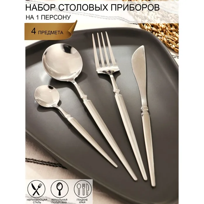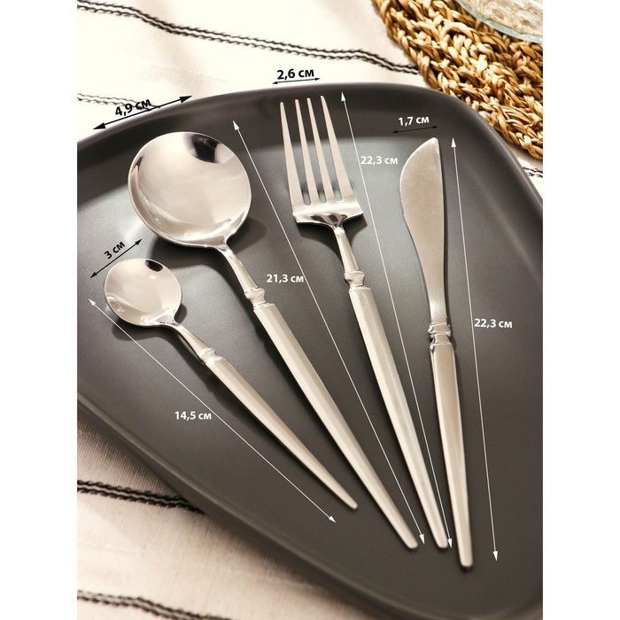 Набор столовых приборов из нержавеющей стали Доляна «Атлас», 4 предмета, толщина 1,5 мм, цвет серебряный — Характеристики
