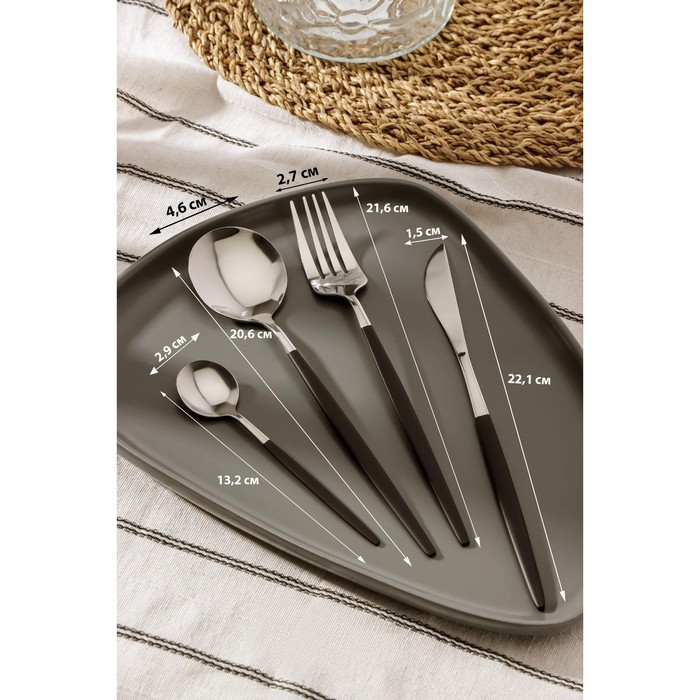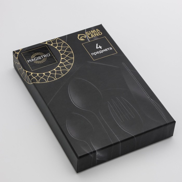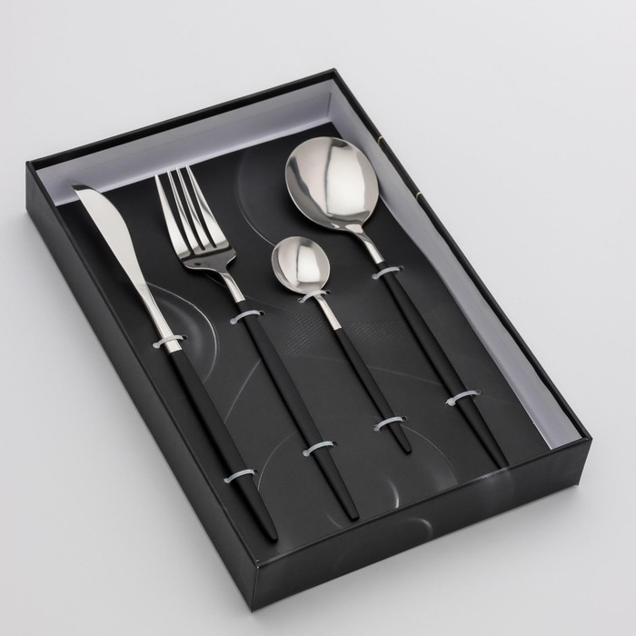 Набор столовых приборов из нержавеющей стали Magistro «Блинк», 4 предмета, цвет металла серебряный, чёрные ручки — Характеристики