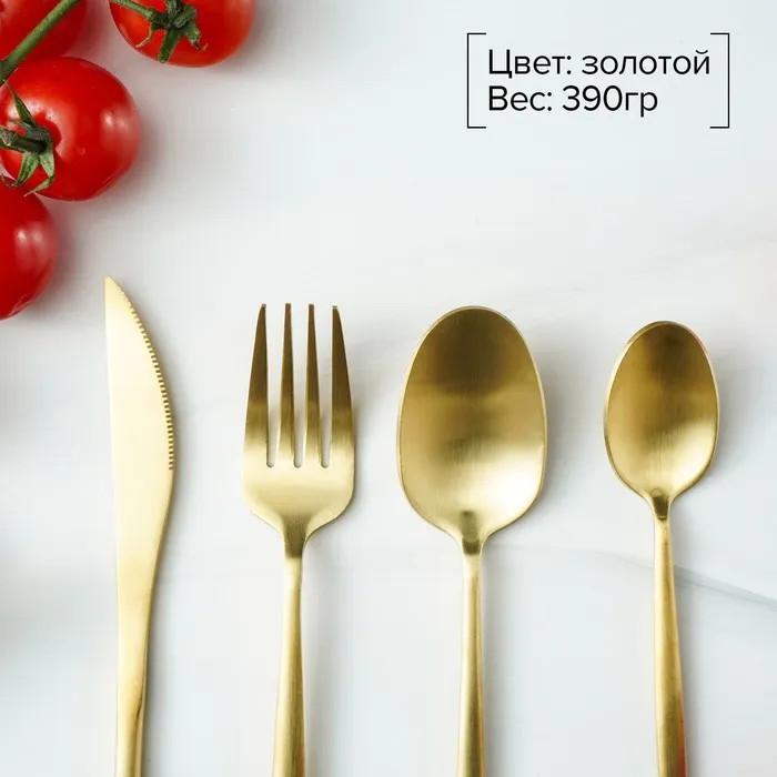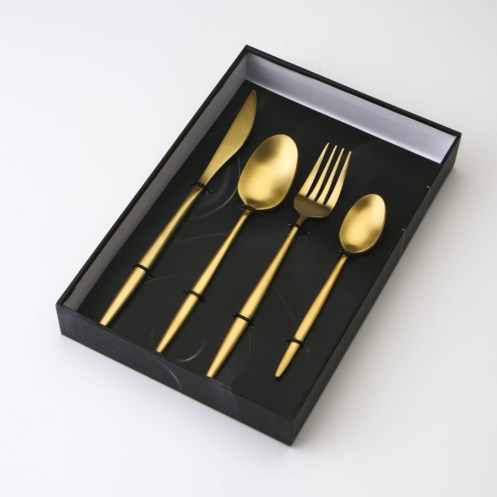 Набор столовых приборов из нержавеющей стали Magistro «Оску базис», 4 предмета, цвет золотой — Характеристики