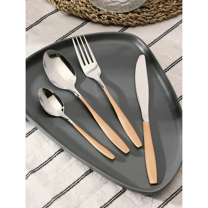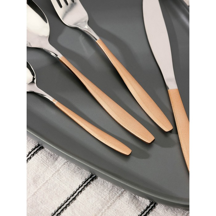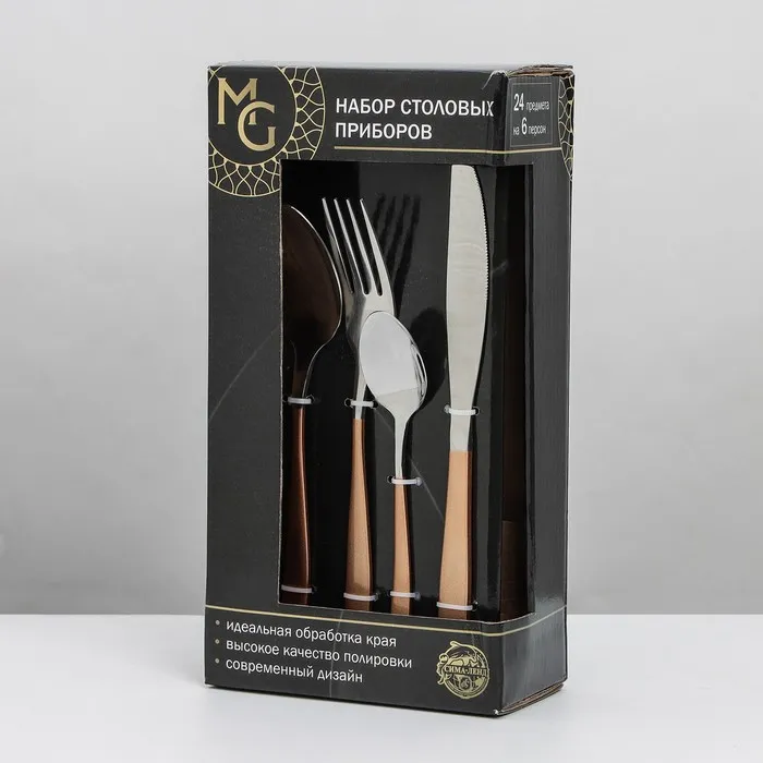 Набор столовых приборов из нержавеющей стали Magistro Temptation, 24 предмета, картонная коробка, цвет ручки золотой, цвет металла серебряный — Характеристики