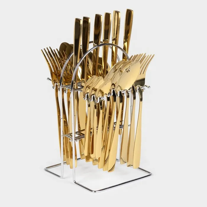 Набор столовых приборов из нержавеющей стали «Золото», 24 предмета, на подставке, нержавеющая сталь, золотистый — Характеристики