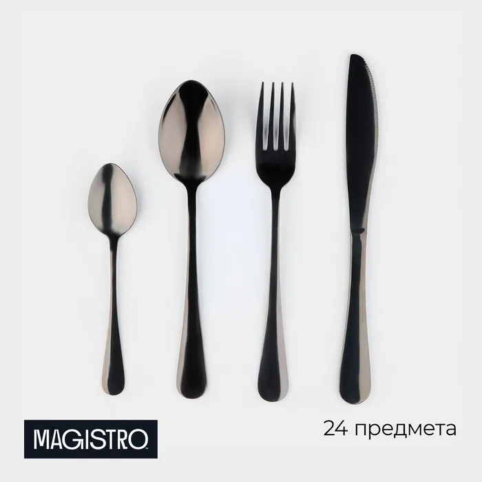 Набор столовых приборов Magistro, 24 предмета, нержавеющая сталь, чёрный — Характеристики