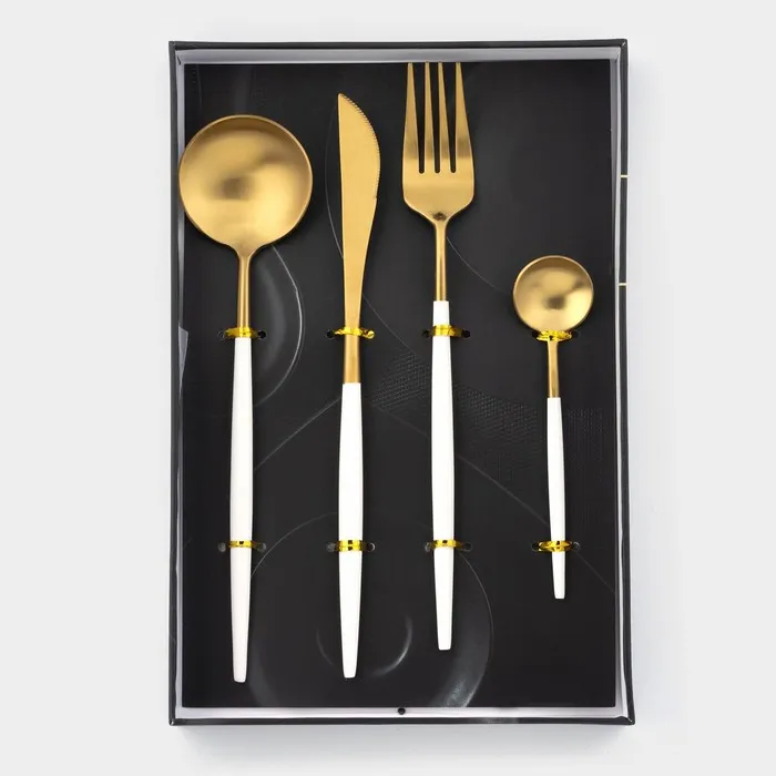 Набор столовых приборов Magistro «Фолк», 4 предмета, нержавеющая сталь, цвет металла золотой, белые ручки — Характеристики