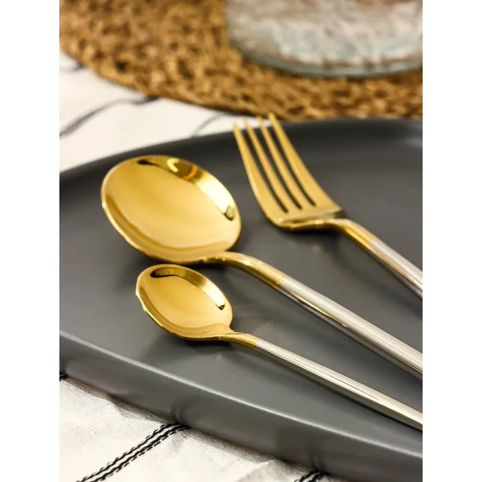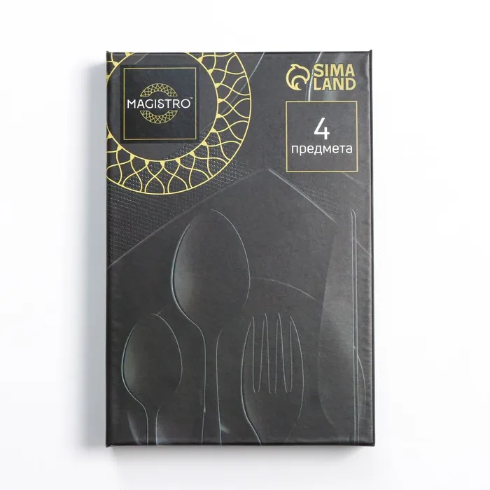 Набор столовых приборов Magistro «Фолк», 4 предмета, нержавеющая сталь, цвет металла золотой, серебряный ручки — Характеристики