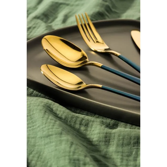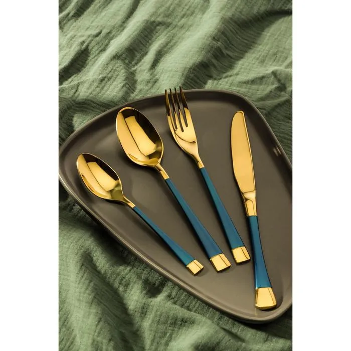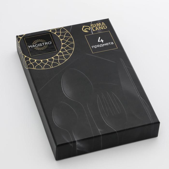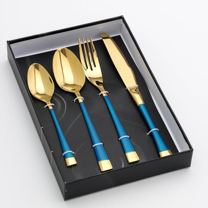 Набор столовых приборов, Magistro «Виконт», 4 предмета, цвет металла золотой, синие ручки — Характеристики