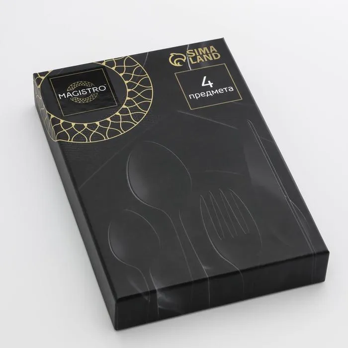 Столовые приборы Magistro «Виконт» – аристократичные предметы сервировки, которые придутся по вкусу ценителям прекрасного. Предметы увесистые, но при этом хорошо сбалансированные, им и удобно пользоваться каждый день. Ручки столовых приборов имеют необычную форму, что придаёт им элегантности. Функциональные ножи с широким основанием и скругленным кончиком удобно использовать как для нарезки продуктов, так и для намазки паштетов или сливочного масла. Глубокие вместительные ложки оптимальны для супов и бульонов.
