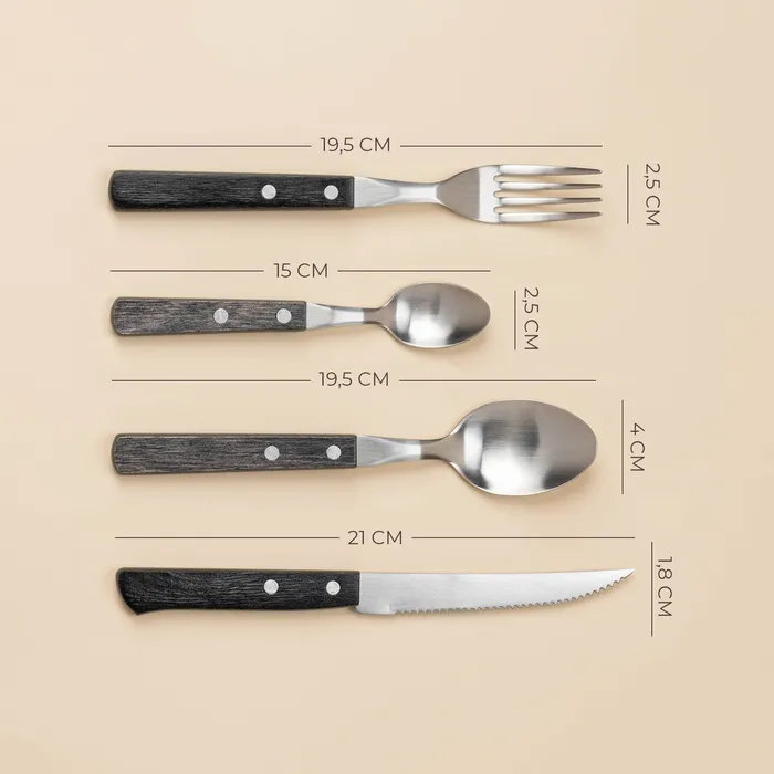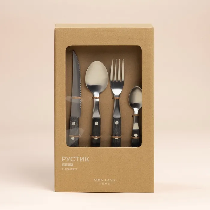 Набор столовых приборов SL Home, 24 предмета, нержавеющая сталь, серебристый, цвет ручки коричневый — Характеристики