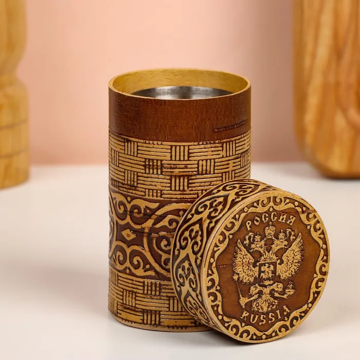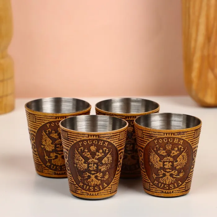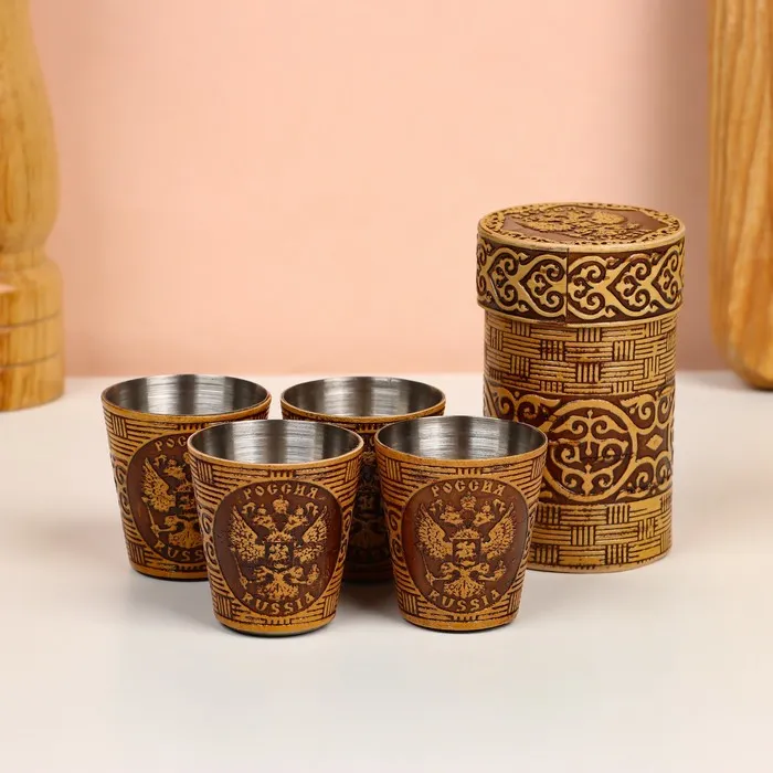 Набор стопок «Герб России», 4 шт, в тубусе, 4,5×4,5×9 см, береста — Характеристики