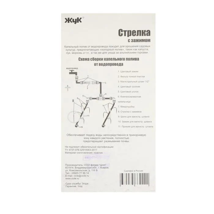 Набор стрелок с зажимом для капельного полива от водопровода, 10 шт., «Жук» — Характеристики