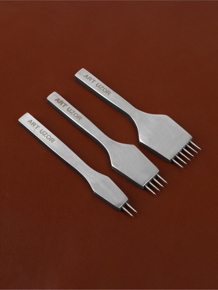 Если вы работаете с кожей и цените точность в деталях, этот набор станет вашим верным союзником. Три аккуратных пробойника с шагом 4 мм созданы для тех, кто предпочитает безупречный результат в каждом отверстии.
