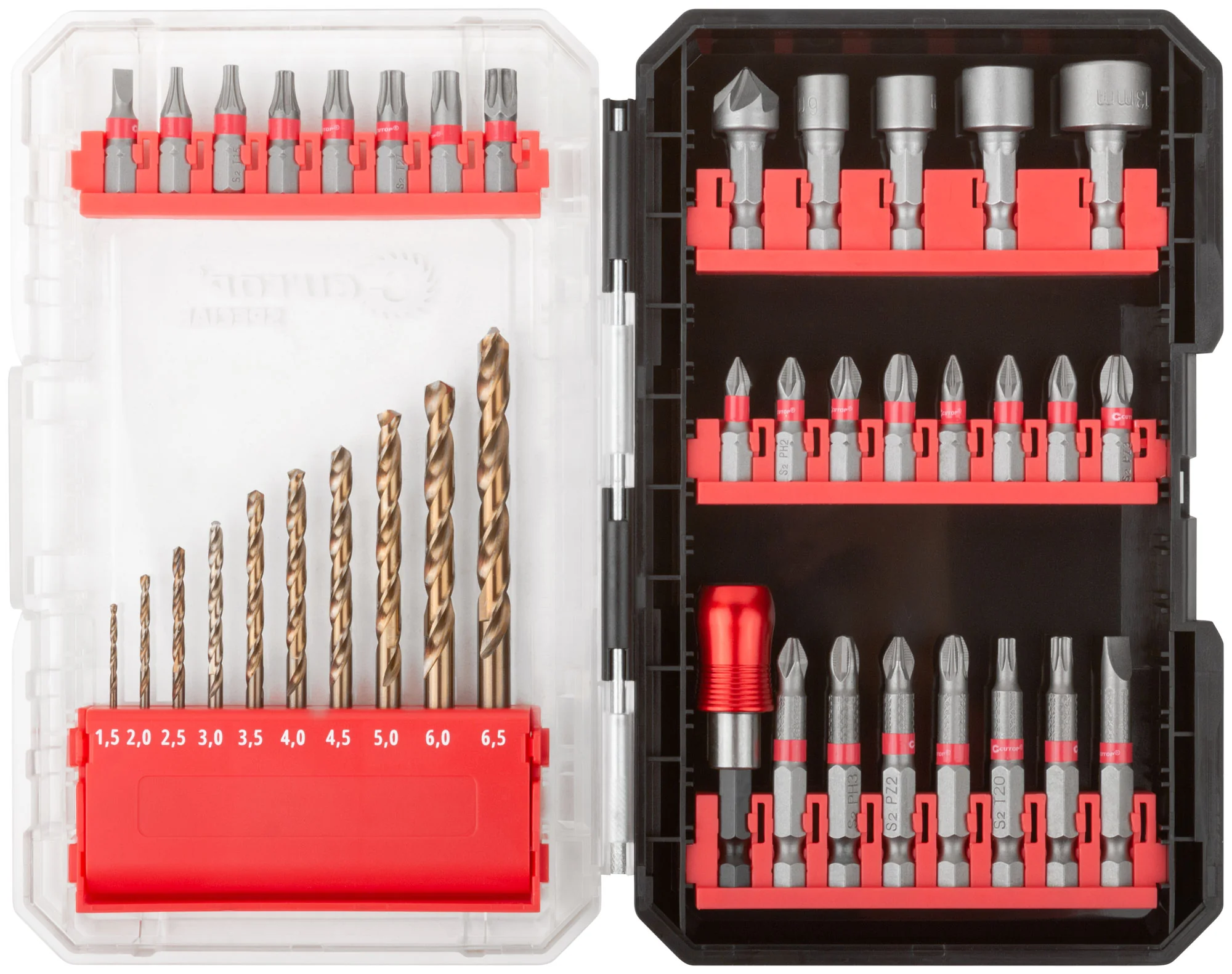 Идеальный набор для тех, кто занимается кровельными и строительными работами. "Строитель" от Cutop включает все необходимые элементы для сверления и закручивания в различных материалах, обеспечивая универсальность и эффективность на рабочей площадке.