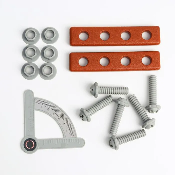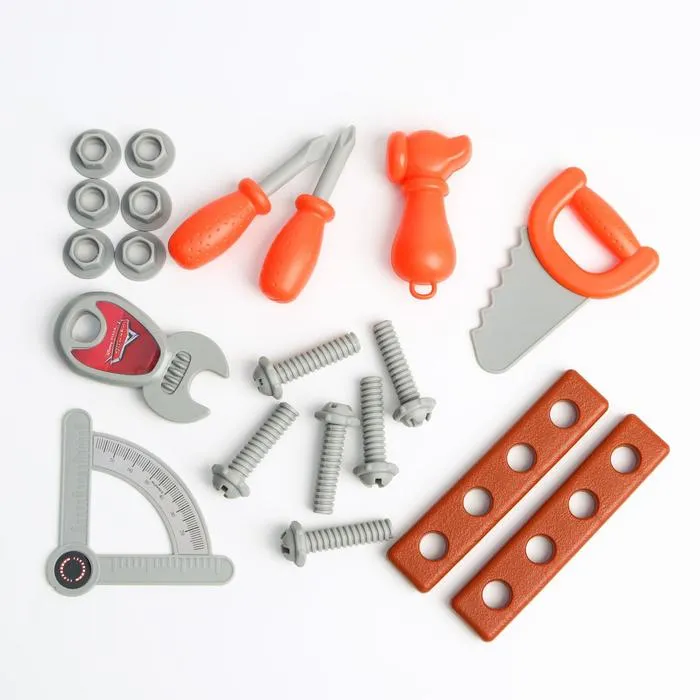 - Полный набор инструментов: внутри вы найдёте круговую пилу, молоток, ключ, отвёртку и другие предметы. Каждый инструмент выполнен из прочного пластика, безопасен для детей и готов помочь в создании новых проектов или ремонте любимых игрушек.