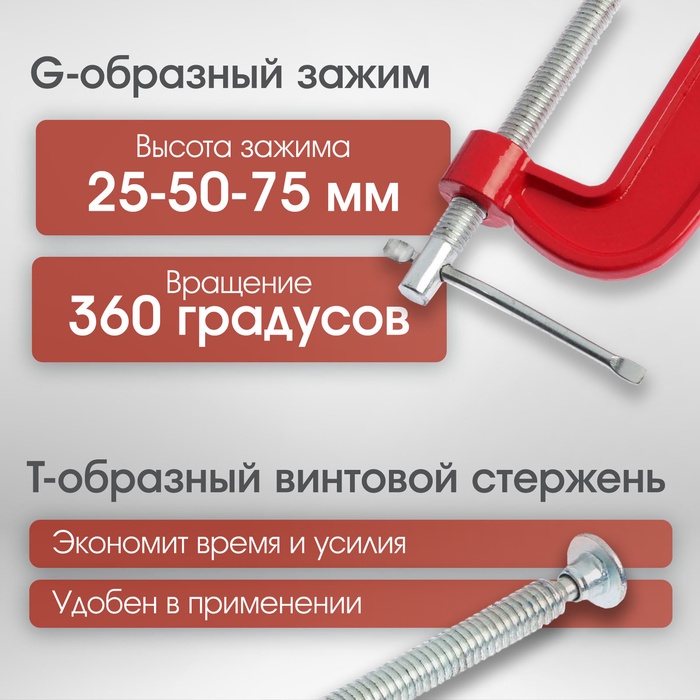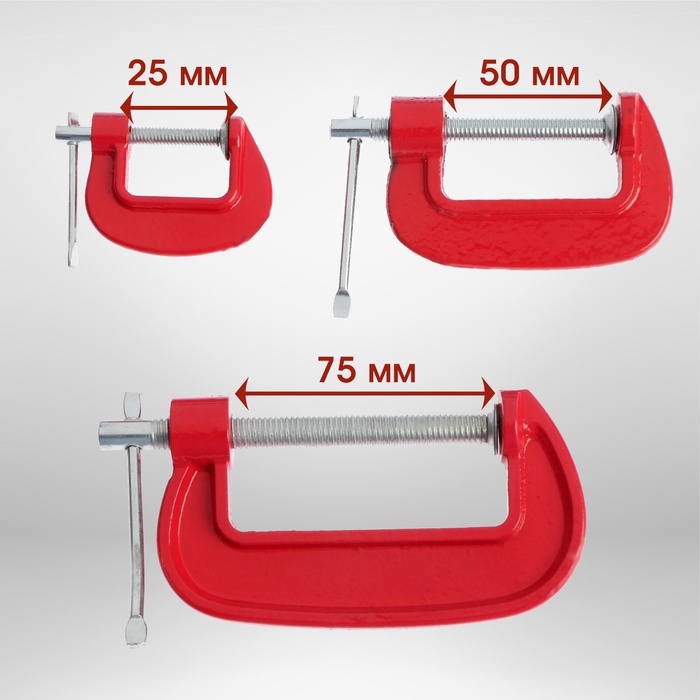 Набор струбцин G-образных ЛОМ, 1-2-3" (25-50-75 мм), 3 шт. — Характеристики