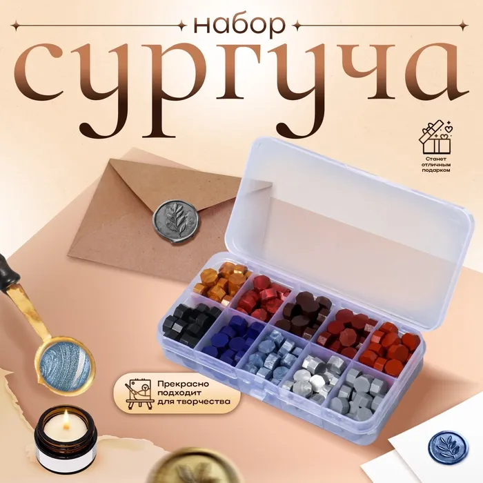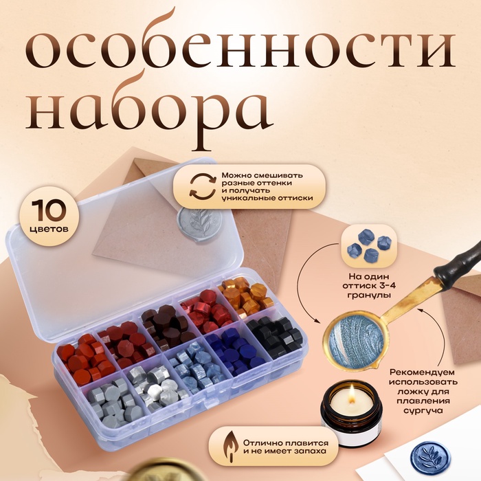Набор сургуча «Холодные оттенки», матовый, перламутр, 10 цветов, 12.7×6.5×2 см — Характеристики