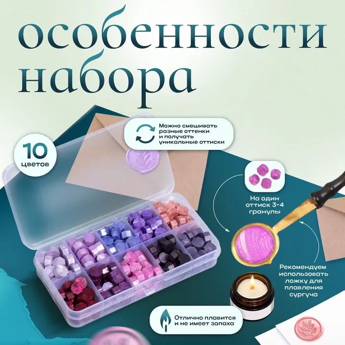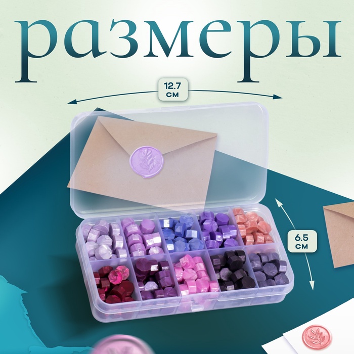 Набор сургуча «Оттенки фиолетового», перламутр, 10 цветов, 12.7×6.5×2 см — Характеристики