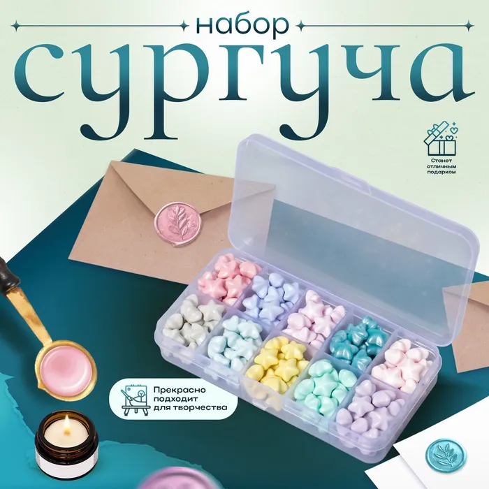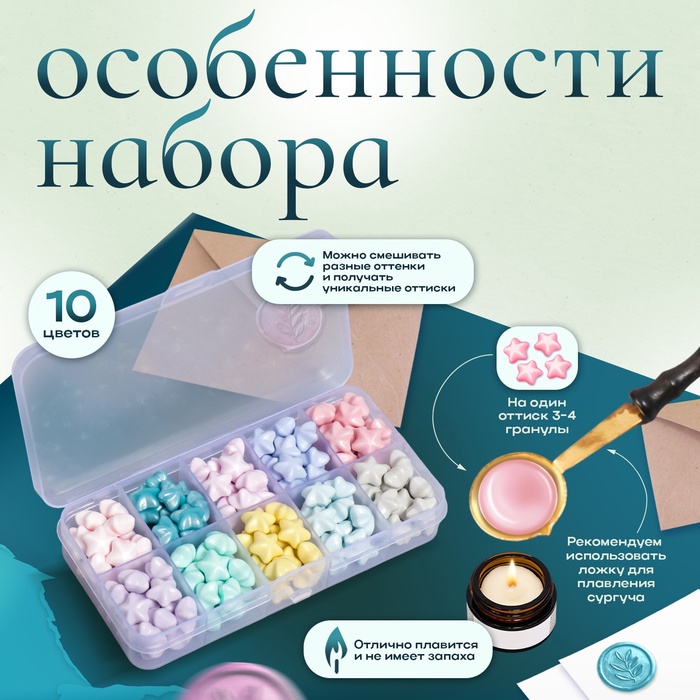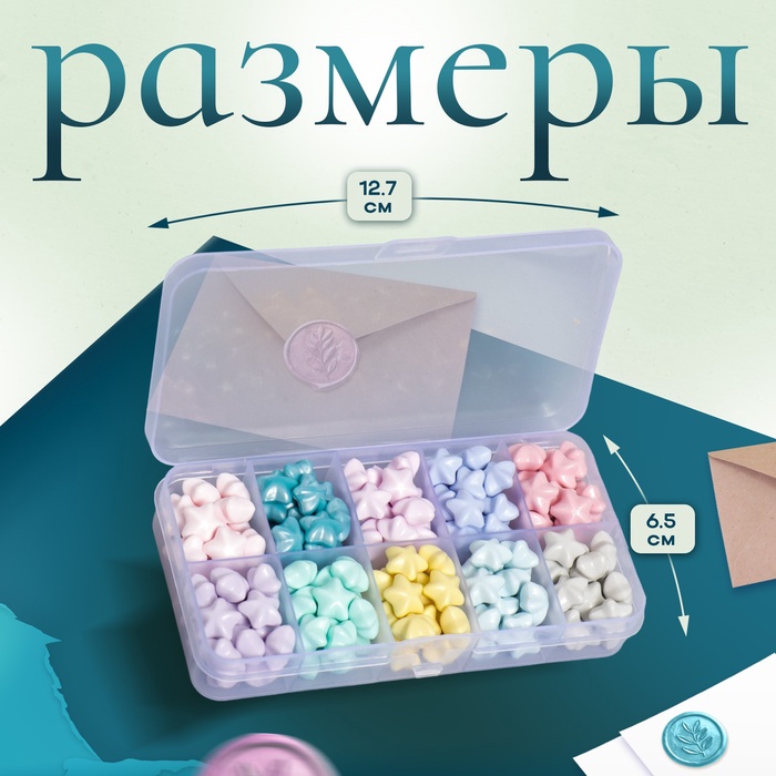 Набор сургуча «Звёздочки», пастельные тона, 10 цветов, 12.7×6.5×2 см — Характеристики