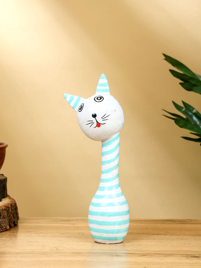 Набор сувенирный "Полосатые коты" дерево H 27, 22, 17 см, цв. бело-бирюзовый — Характеристики